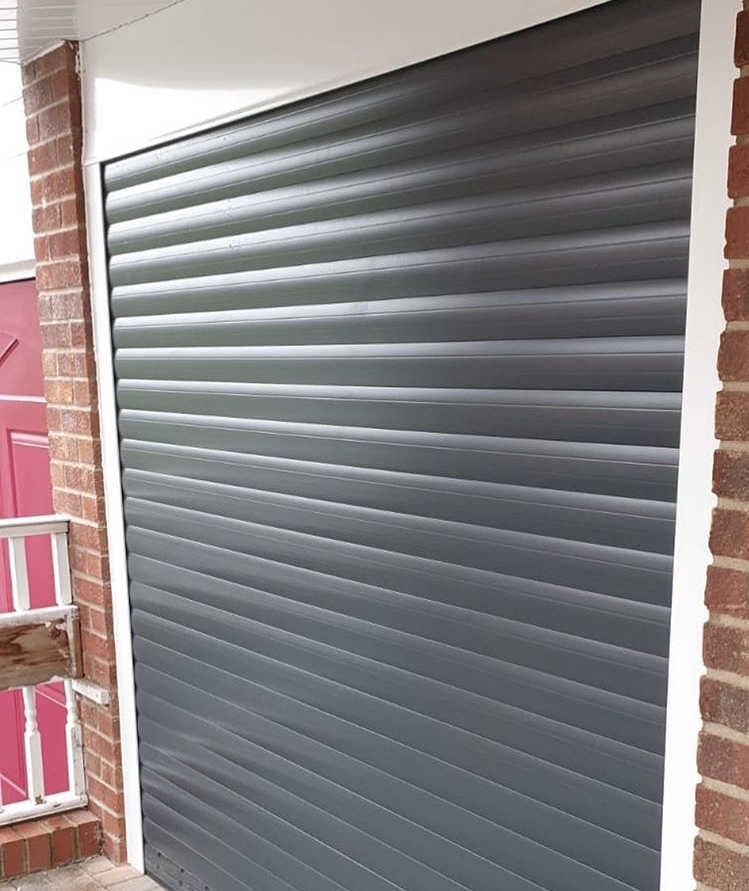 We have installed a aluminium insulated roller garage door, grey finish in Heywood.