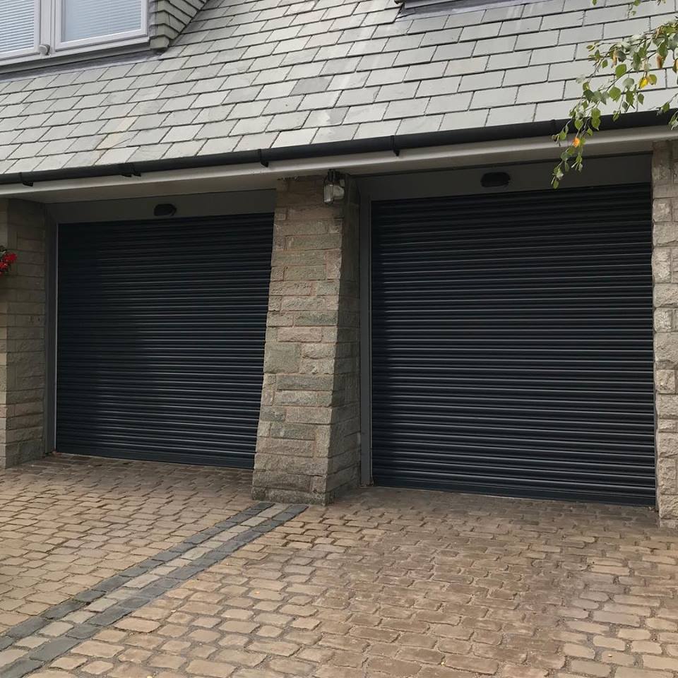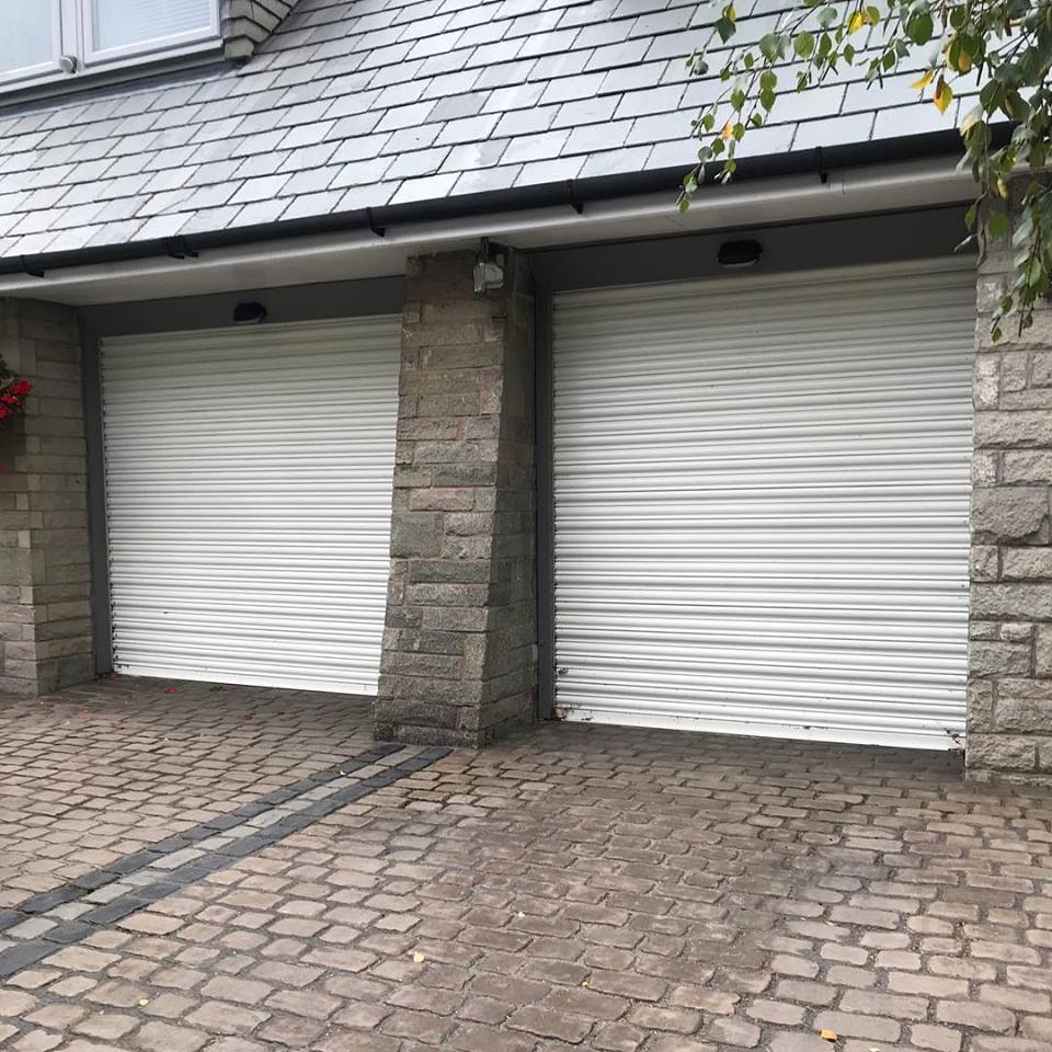 We have updated two tired looking roller garage doors with new curtains. Before & after pictures!