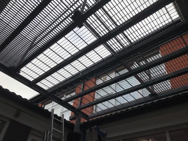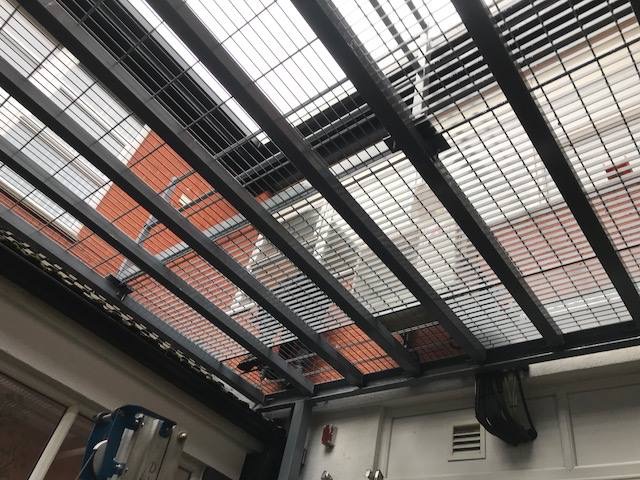 This is a steel framework installed in a hospital in Manchester, to contain patients and enable engineers to gain access to the air conditioning units.
