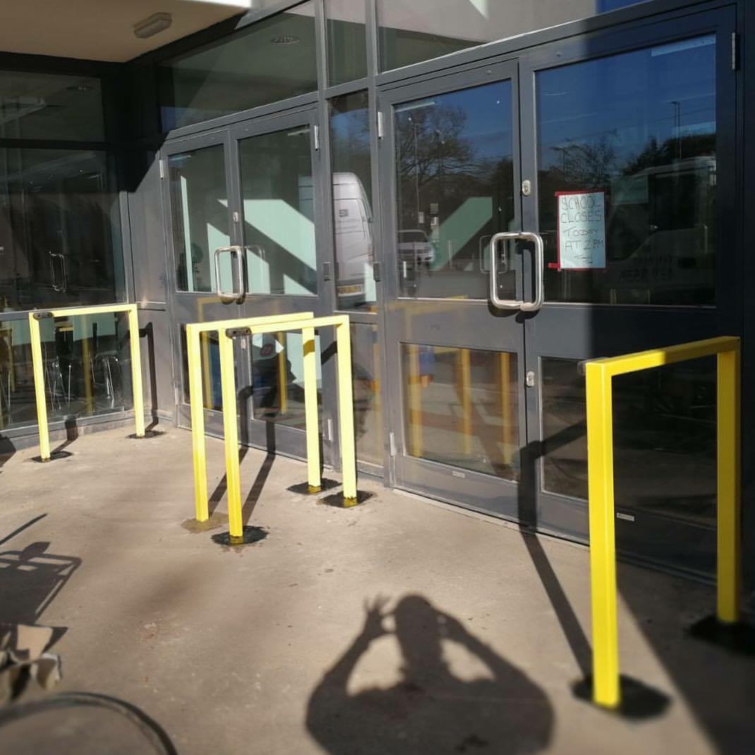 We have installed steel door stops complete with rubber bumpers to stop the doors swinging back at a high school in Rochdale.