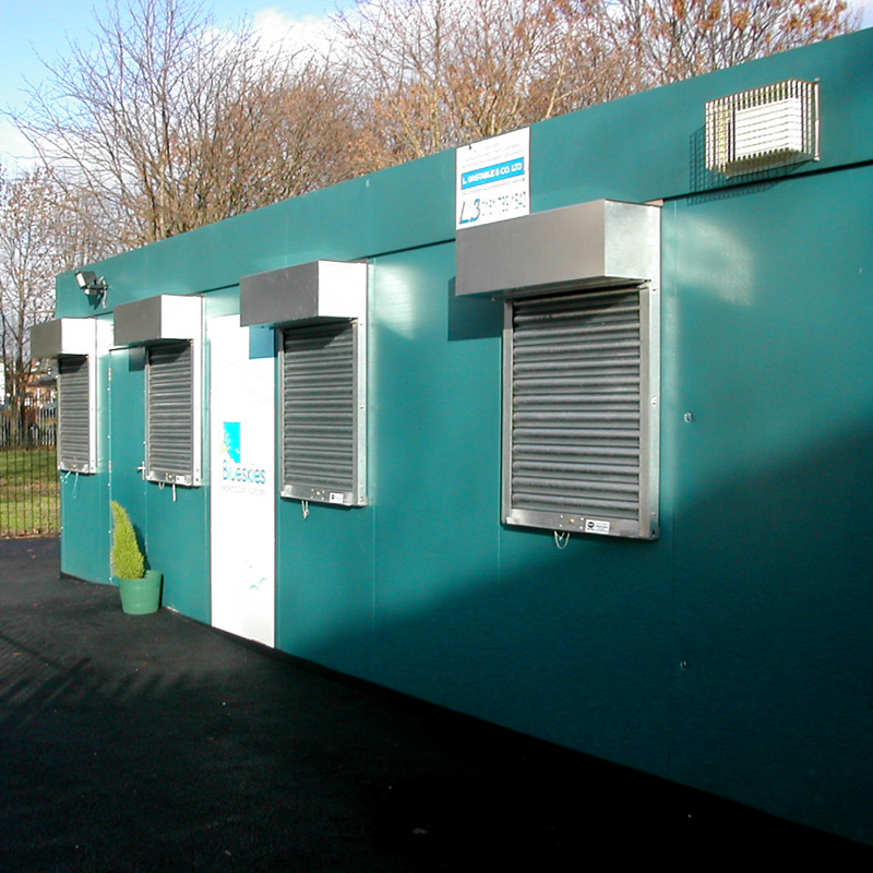 Our standard steel roller shutter is the strongest of our shutters and is fabricated in-house from 3” curly galvanised lath and comes complete with guides, flags, and canopy. All our steel shutters are made from galvanised steel. We have an in-house powder coating oven, giving you the choice of a large selection of colours. Our steel shutters can be used on domestic, retail, commercial or industrial premises.